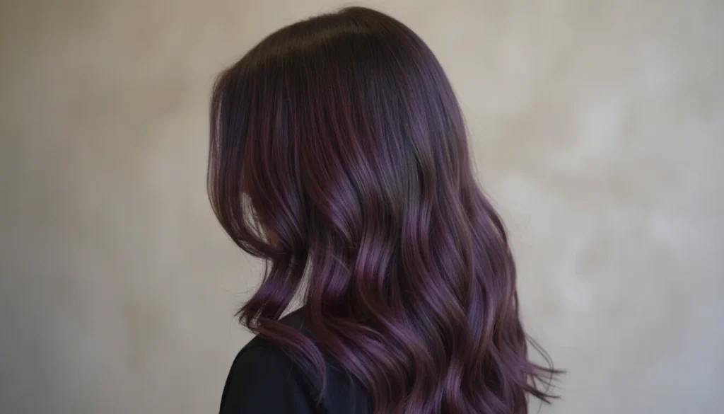 This mix of black and plum brings a mysterious, moody edge that’s impossible to ignore. The purple streaks peek through dark waves, adding depth and that pop of bold color under the right lighting.