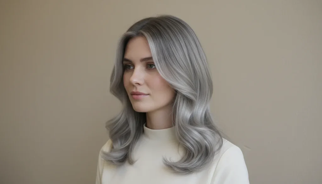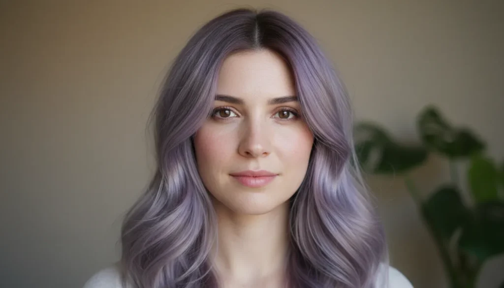 This shade works beautifully on medium to dark bases, giving your hair that silvery, pastel glow without needing to go full platinum. It’s especially striking under natural light where those lavender undertones really shine through.