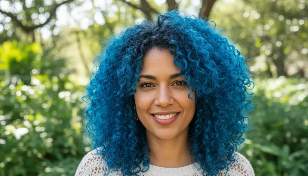 This electric blue hair brings instant energy to every strand. When you add curls into the mix, the color gets even more dimension—catching the light in the most striking way.