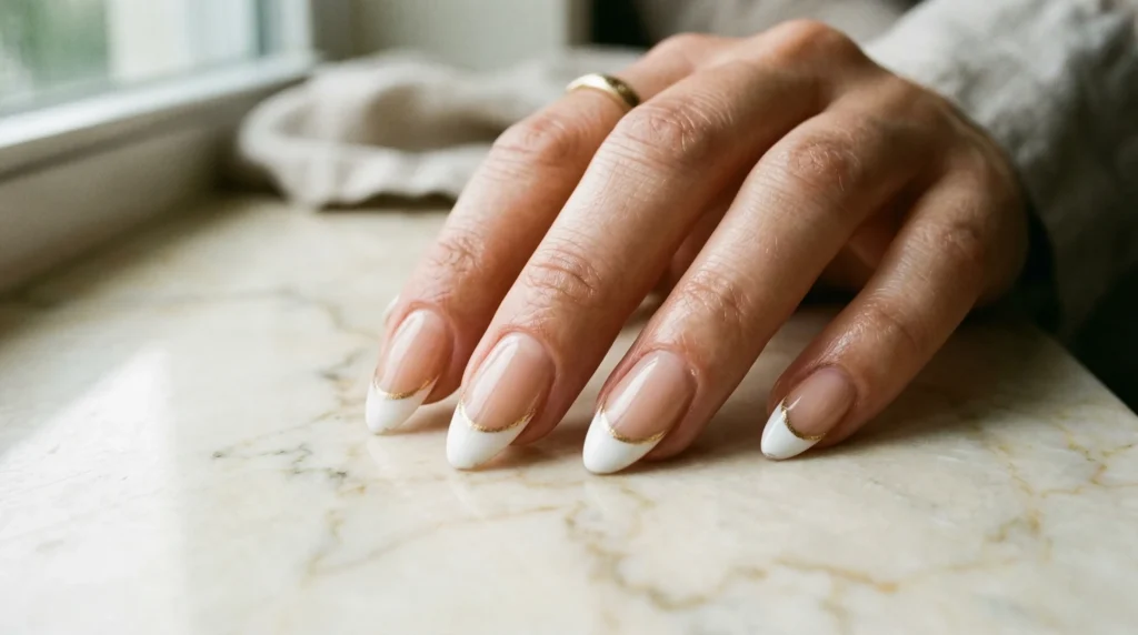 - French manicure 2026 — modern updates with gold detailing and curved tips