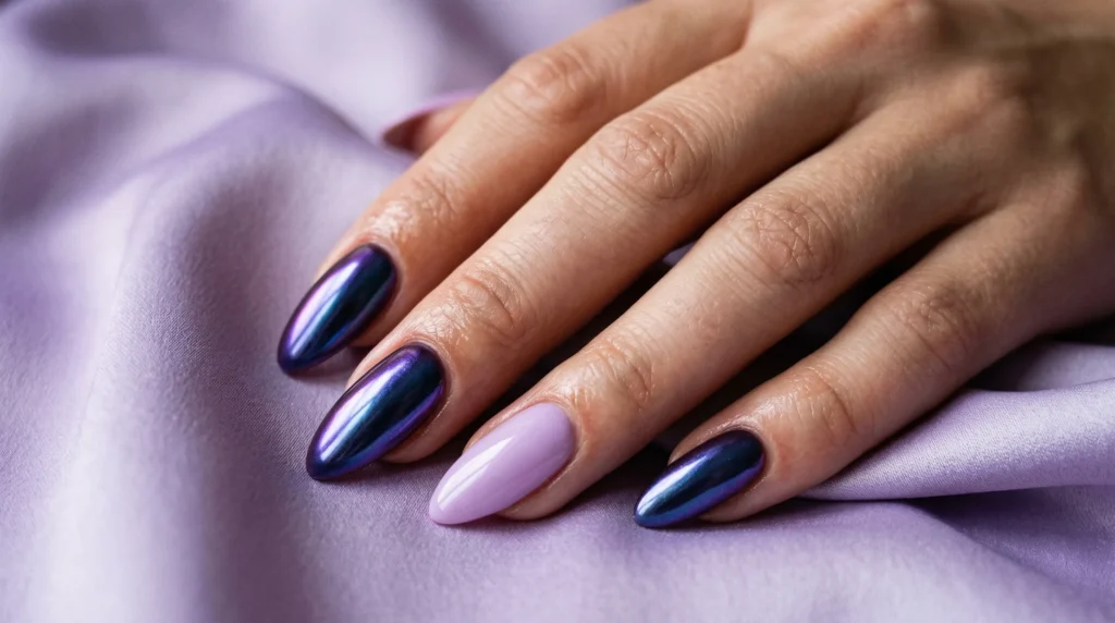 1. Iridescent Lavender Chrome for Soft Spring Drama
