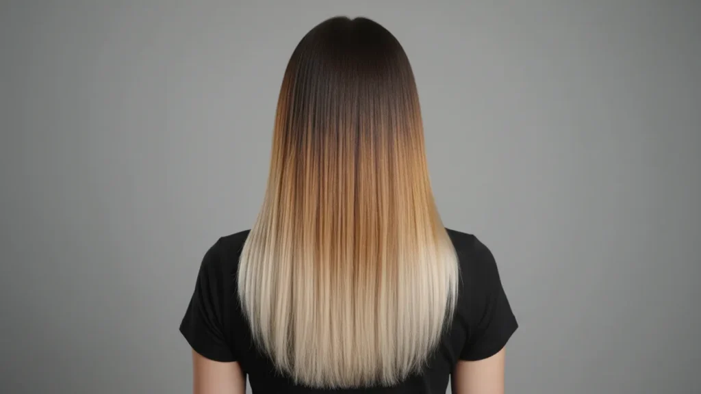 Ombre creates that distinctive two-toned effect. Your roots stay dark while your ends are significantly lighter. The contrast is the whole point—you’re not trying to look like you were born with it.