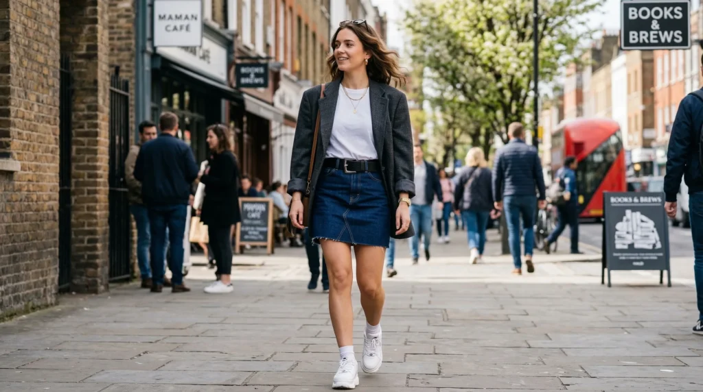 Okay, don’t roll your eyes just yet. The denim mini skirt has had a serious glow-up for 2026. Gone is the super-short, boxy version from the early 2000s. This year’s version is a bit more structured, often slightly A-line, and pairs beautifully with oversized blazers or cropped knit tops.
