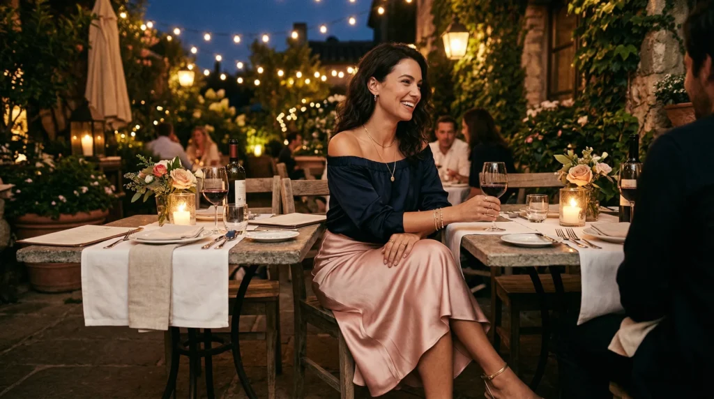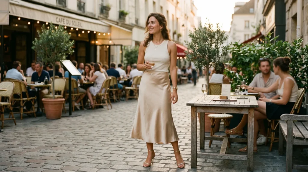 For evenings, the satin bias-cut skirt is hands-down my favorite recommendation. It’s grown-up, elegant, and incredibly comfortable. Pair it with a silky cami top or an off-shoulder blouse, add some gold jewelry, and you’ll feel amazing.