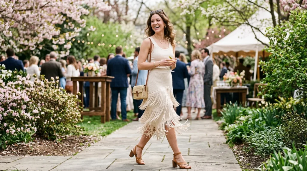 What makes fringe so fun is the movement — every step brings the skirt alive. For festival outfits or outdoor spring events, this is one of the most statement-making choices of the season — and one that most people haven’t fully jumped on yet.