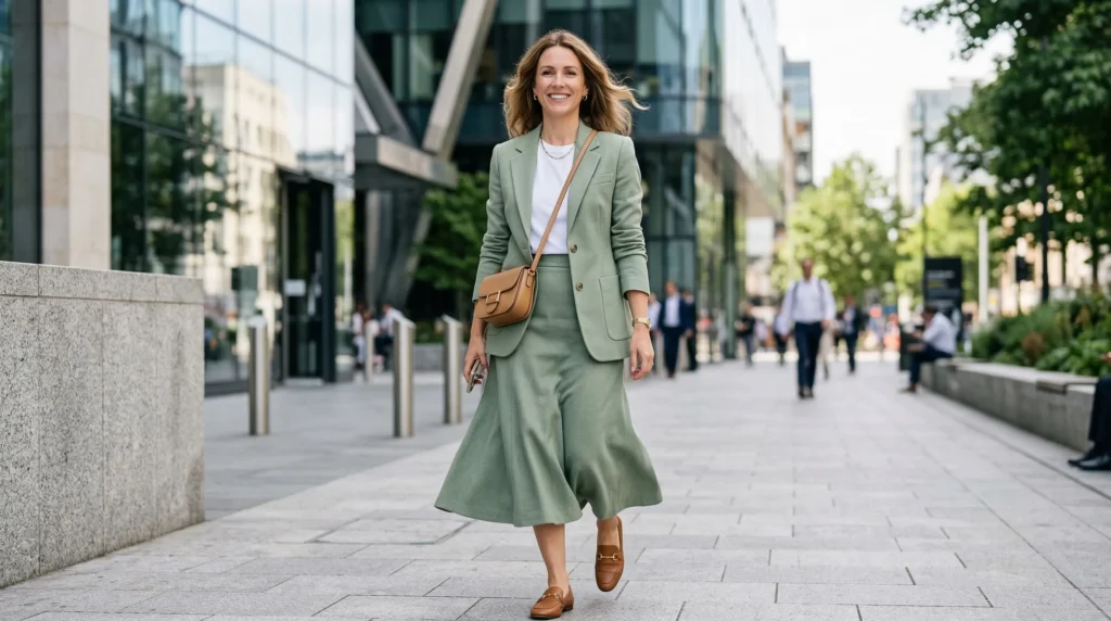 The skirt suit has officially shed its 1980s power-dressing reputation and emerged as one of the most genuinely chic outfit formulas for spring 2026. We’re not talking shoulder pads and stiff fabrics — this season’s versions are relaxed, modern, and surprisingly wearable. Think a softly tailored blazer paired with a matching midi pencil skirt in a spring-ready shade like sage, cream, or soft lilac.