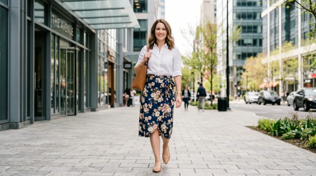 Taking spring skirt styles into the office is easier than you might think. A floral wrap skirt paired with a crisp white button-down and pointed-toe flats is both professional and stylish. Alternatively, a midi skirt in a neutral tone with a fitted blazer and block heels will never go wrong.