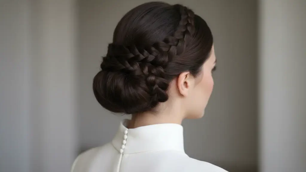 Think timeless elegance meets modern sophistication. This intricate style features multiple braids and twists pulled into a structured bun that feels graceful and luxe.