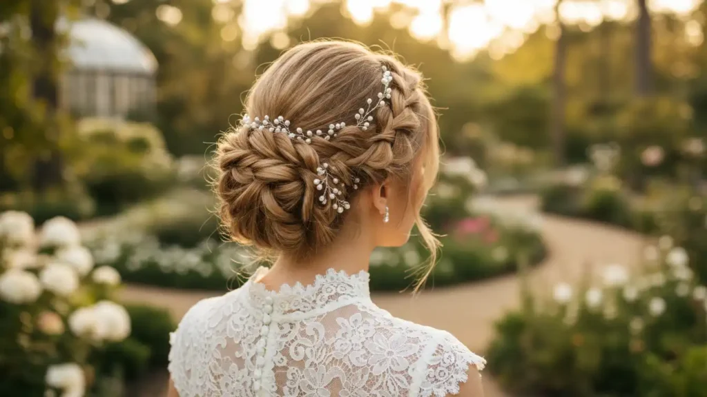 | Braided Low Bun | Medium-Long | Boho, Romantic | 10+ hrs | High | No |