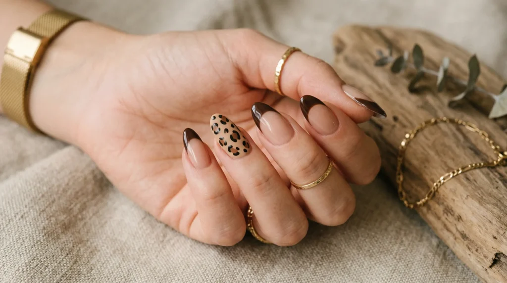 Modern safari-adjacent nail art is one of the most quietly trending directions in brown nail designs 2026. It sits in the intersection of fashion print culture and nail art, which gives it a cultural currency that straightforward animal print alone doesn’t have. It reads as someone who is aware of fashion without being consumed by it.