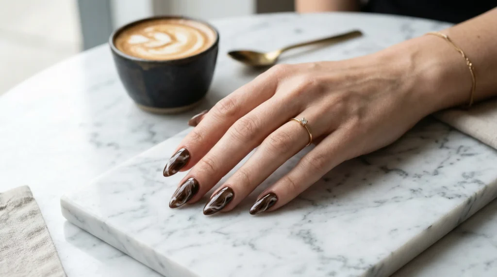 | Coffee Marble Glam | Artistic, flowing, dramatic | When you want nail art |