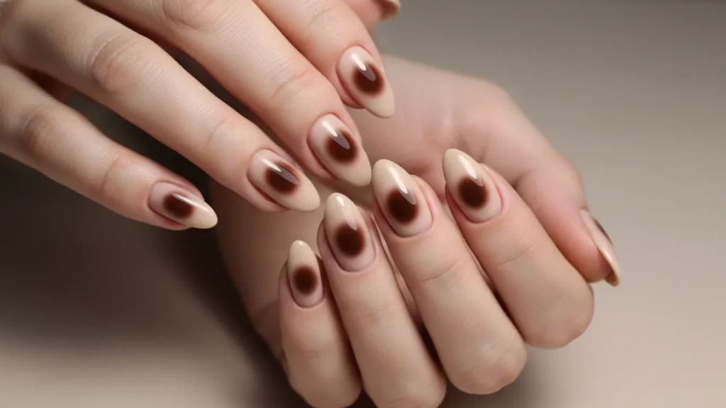 For something distinctly modern, go with brown aura nails. This technique creates a soft, glowing effect where the color appears to radiate from the center of your nail outward.