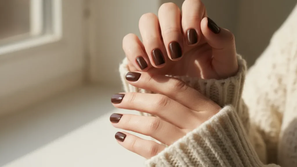 Here’s a pro tip: dark browns look incredible with a glossy topcoat. The shine brings out the richness of the color and makes your nails look professionally done, even if you painted them yourself at home.