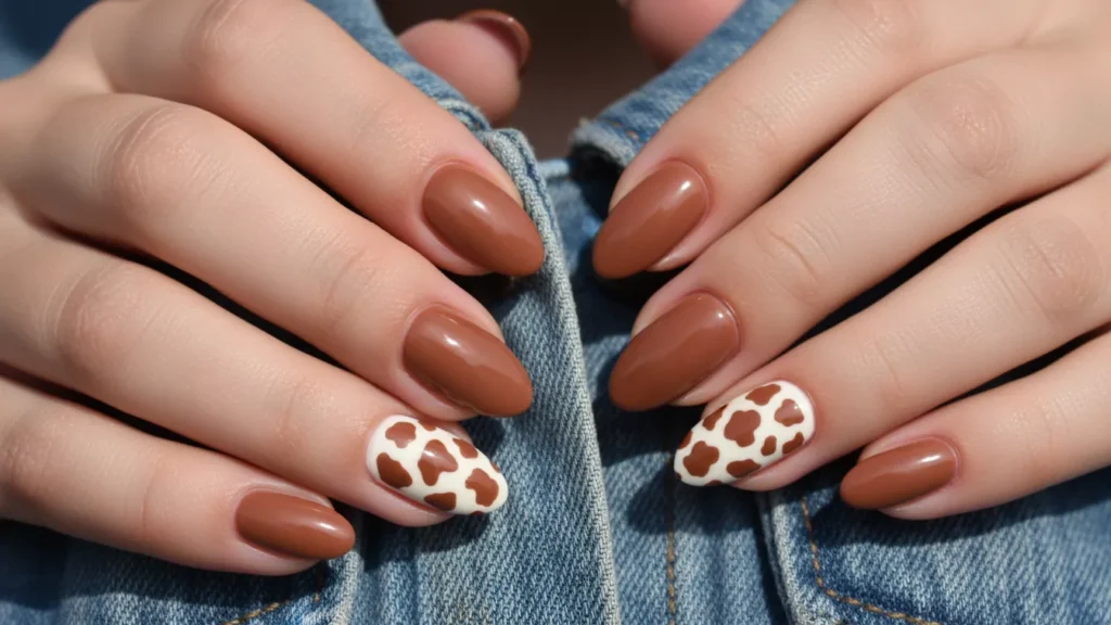 The key here is keeping the rest of your nails simple. Do the cow print on one or two accent nails, and keep the others a solid brown shade. This gives you the fun pattern without overwhelming your whole hand.