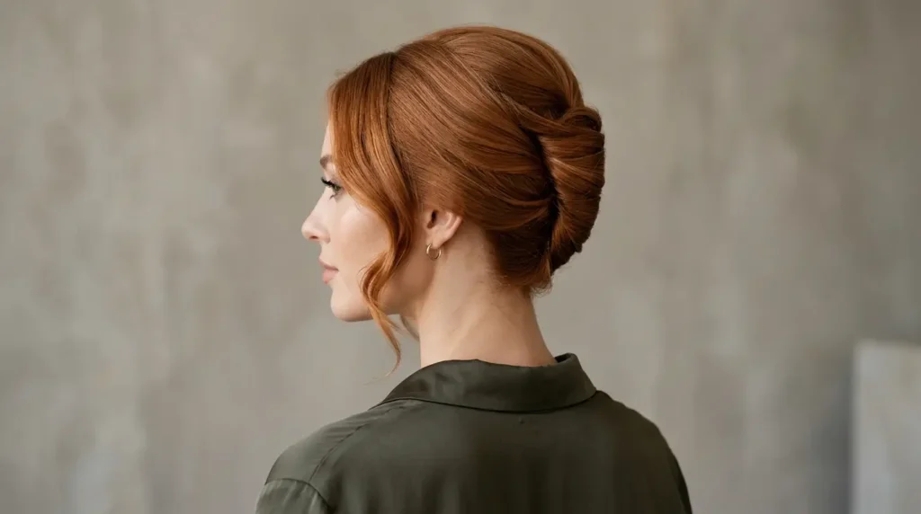 | Modern Copper French Twist | Classic updated, power, modern | Any occasion, any neckline |