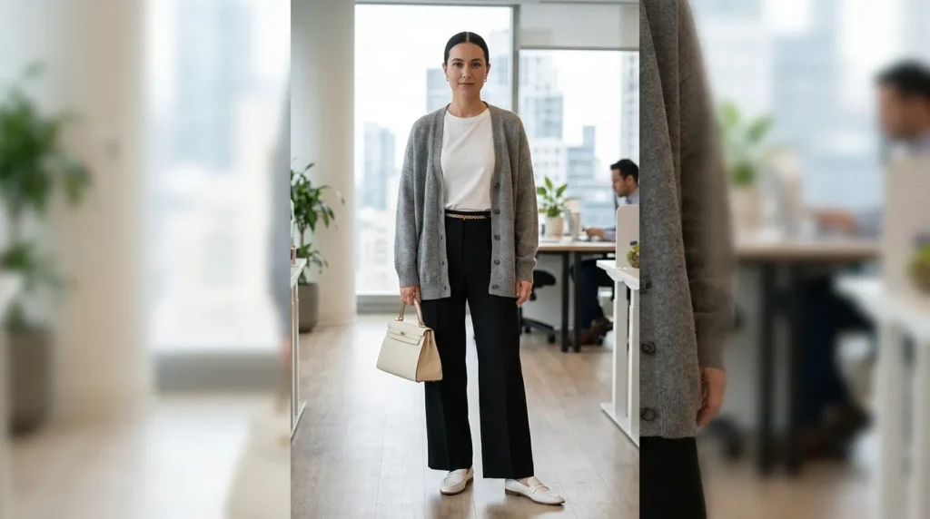 6. Cardigan Comfort Meets Office Polish: Soft Power