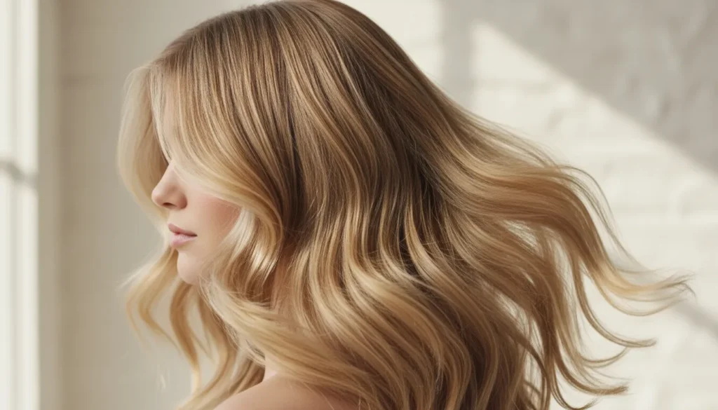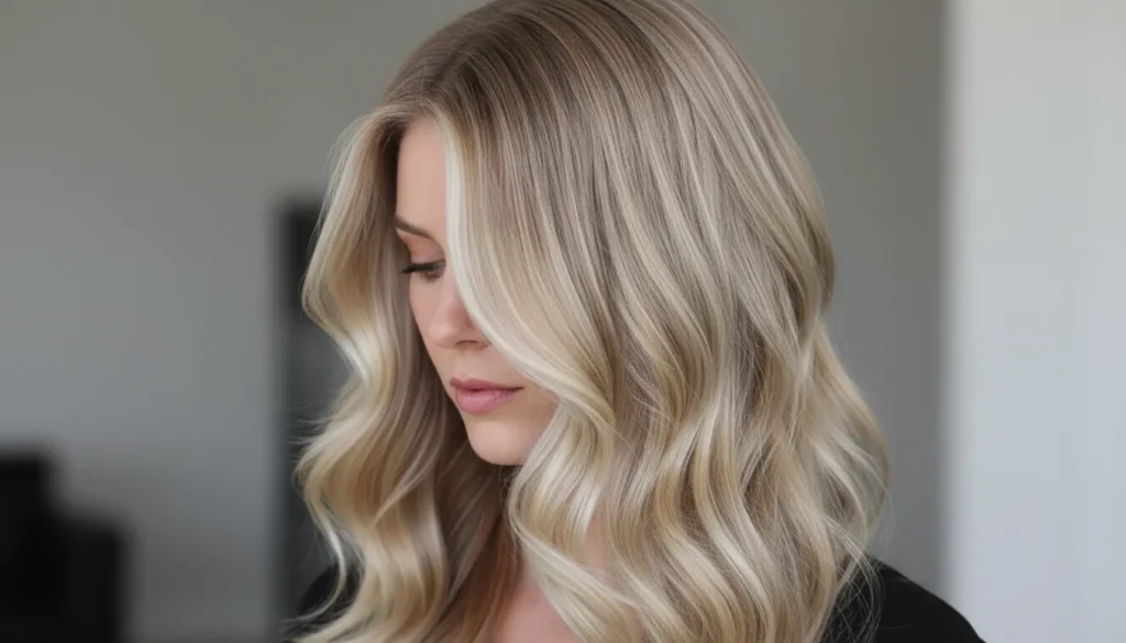 Because the color has both warm and cool tones mixed in, it doesn’t show brassiness as obviously as cooler blondes. And since it’s not ultra-platinum, you don’t need to be at the salon every four weeks fighting off yellow tones.