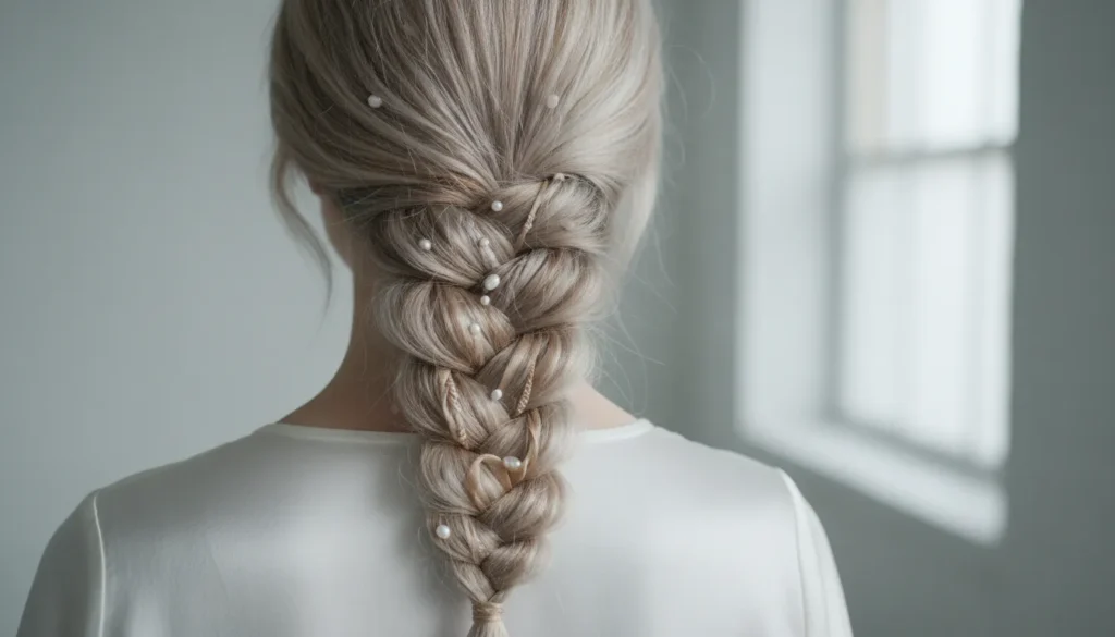 Braids are perfect for showing off this cooler champagne tone because you can see every subtle color variation as the hair weaves together. The light catches those icy highlights in the prettiest way.