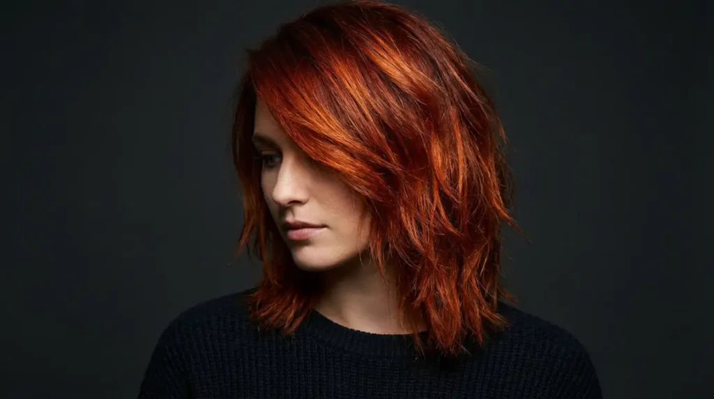 Bold copper-red color combined with choppy layers creates a fiery, attention-grabbing look. The vibrant color is enhanced by the textured layers, making each piece pop.