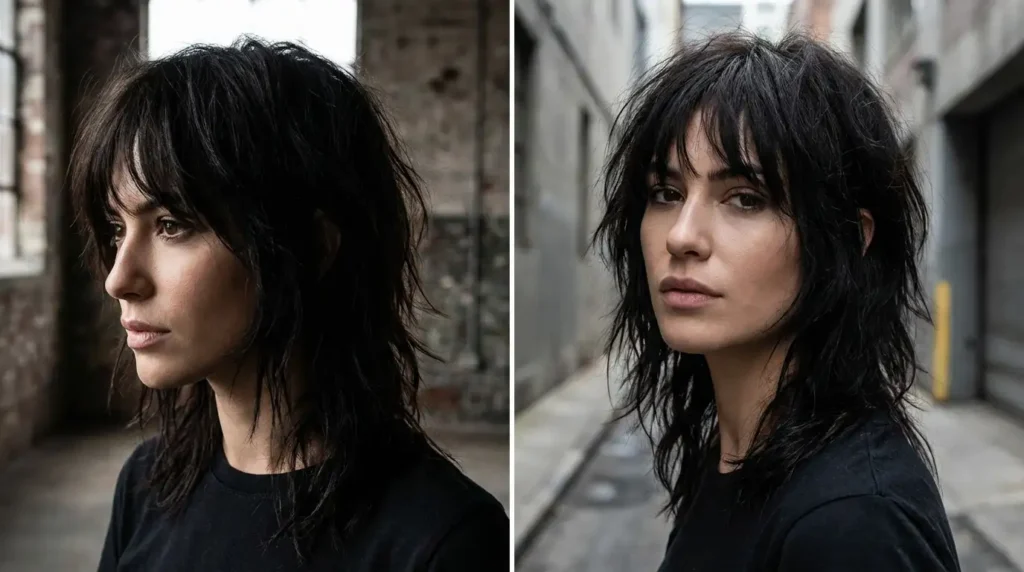 What I love about this style is its versatility. You can wear it messy and tousled for that authentic rocker vibe, or smooth it out for a more polished take on the trend.