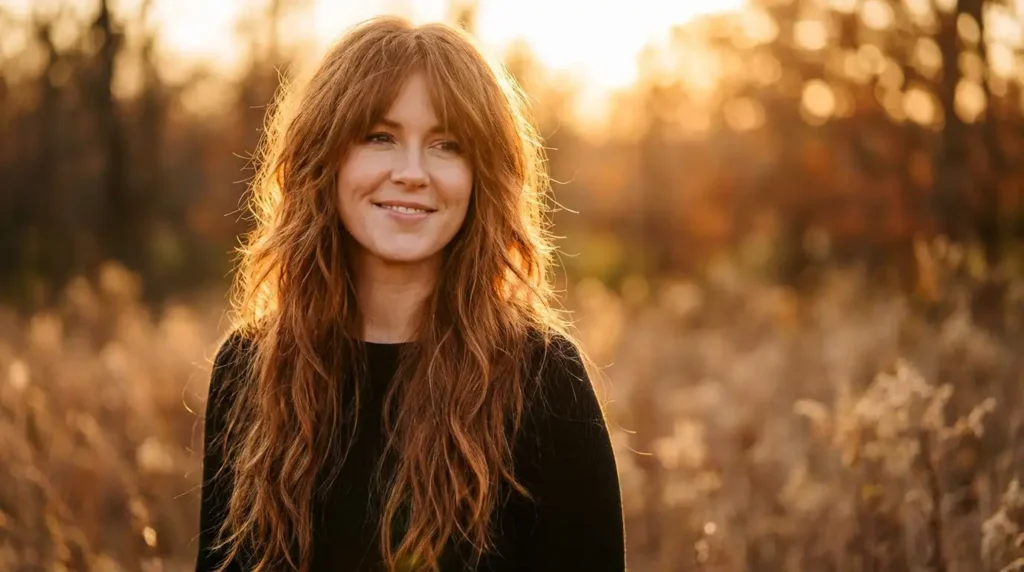 Best for: Oval, heart, and long face shapes. The bangs and face-framing layers balance proportions beautifully. Works on all hair textures, but looks especially stunning on medium to thick hair.