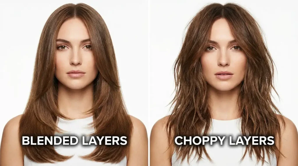 Bring multiple reference photos showing exactly what you want. Be specific about how choppy you want to go – subtle and piece-y or dramatic and shaggy. Communication prevents disappointment.