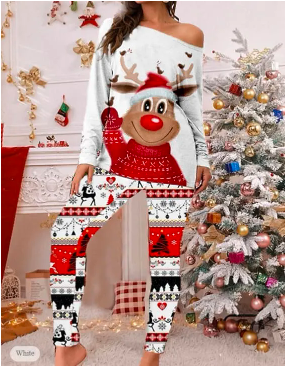 3. Reindeer Merriment: Festive Reindeer Top & Legging Set