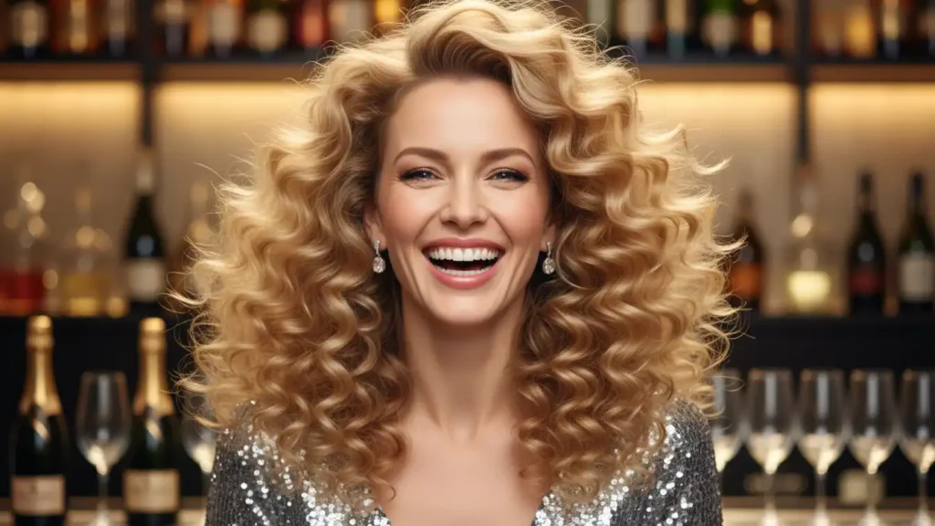 A curly ponytail with volume feels fun, confident, and festive. Lifting the crown adds height and makes the style more flattering. The curls in the ponytail create bounce and movement. This look is practical while still feeling glamorous. It’s ideal if you plan on dancing or staying out late.