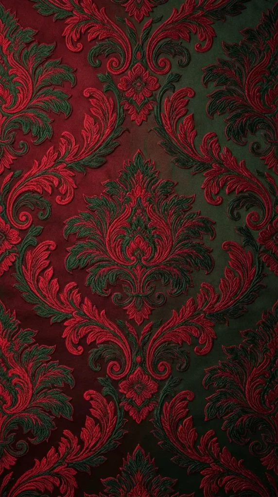 Damask and Elegant Repeating Patterns: More sophisticated than traditional gift wrap, damask patterns in red and green bring Victorian elegance to your screen. These ornate designs feel luxurious and work well for users who appreciate classic, refined aesthetics.