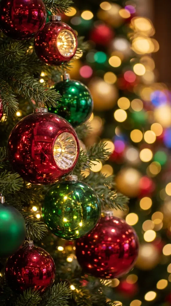 Glowing Ornaments: Illuminated Christmas ornaments photographed in red and green create stunning wallpapers with depth and dimension. The reflective surfaces of glass ornaments catch light beautifully, and when combined with soft background blur, they create sophisticated holiday imagery.