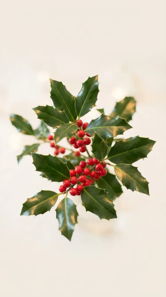 Holly and Berries: The iconic combination of deep green holly leaves with bright red berries is Christmas personified. Look for wallpapers with these elements arranged artistically—perhaps a wreath composition or a simple branch across your screen. The natural shine of holly leaves photographs beautifully and creates visual interest through texture and light reflection.