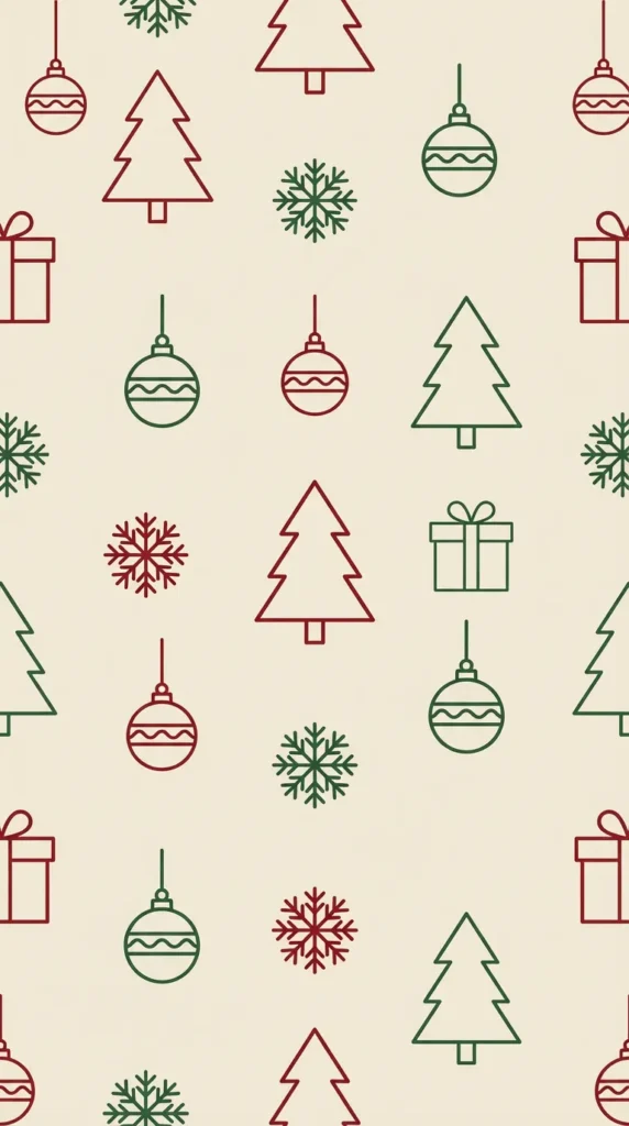 Line Art and Icons: Simple line drawings of Christmas elements—ornaments, trees, gifts—in red and green on neutral backgrounds bring playful festivity with artistic restraint. These designs feel contemporary and work well for younger users or those in creative fields.