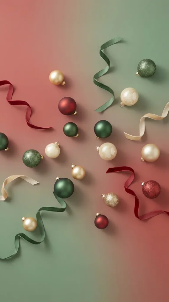 Retro Ornament Patterns:Think small, repeating patterns of classic glass ornaments in ruby red and emerald green. These designs often feature gold accents and have that slightly faded, aged quality that makes them feel authentically vintage. They work beautifully as both lock and home screen wallpapers because the pattern is busy enough to be interesting but repetitive enough not to distract from your icons.