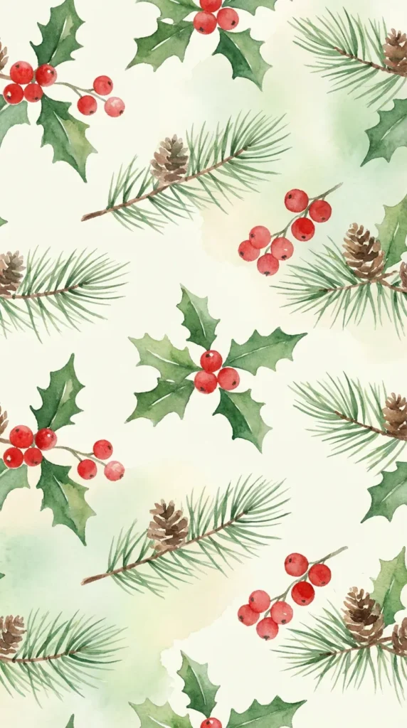 Watercolor Christmas Patterns: Hand-painted or digital watercolor designs featuring red and green holiday elements bring artistic flair to pattern wallpapers. The soft, flowing nature of watercolor makes these patterns feel less rigid and more personal than traditional designs.