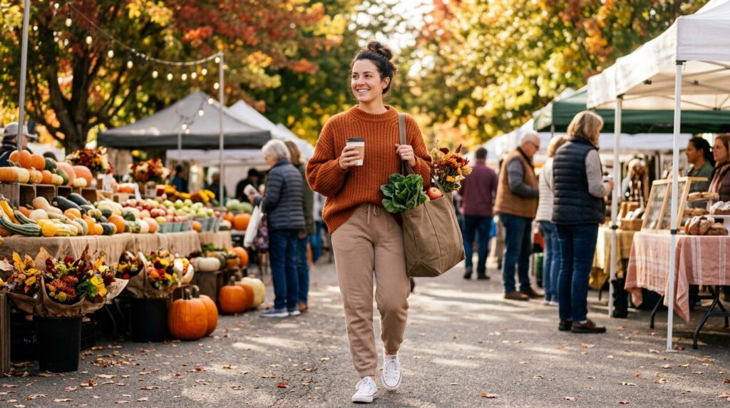 | Rust Glow | Rust sweater, beige joggers | Weekend mornings | Cozy autumn |