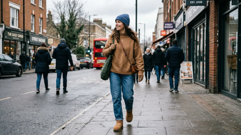 This is one of the most complete comfy outfits for women 2026 on this list because every detail is considered but nothing feels forced. It’s cozy layering done with intention. Great for weekend walks, coffee runs, or just existing in the city in comfort.