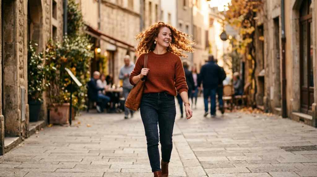 For maintaining copper tones, a weekly treatment like Olaplex No.3 and a color-safe product line keeps the vibrancy alive between salon visits. For styling the curls: a curl-defining soufflé or gel applied to soaking wet hair, diffused on low heat, and left completely alone to dry. Don’t brush after. Don’t touch until it’s fully dry. Scrunch gently with a little oil on your fingertips and you’re done.