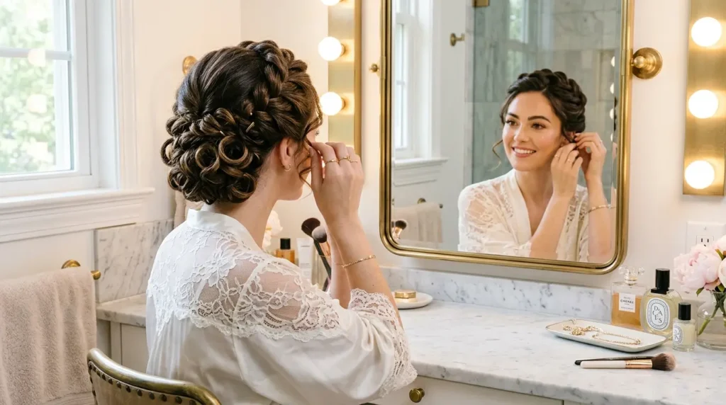It’s bridal without being precious. Romantic without being over the top. The kind of curly hairstyle that earns compliments from strangers — and I say that from direct personal experience. A similar style worn on a trip through France resulted in genuinely embarrassing levels of kind words from people I’d never met. Take that for what it’s worth.