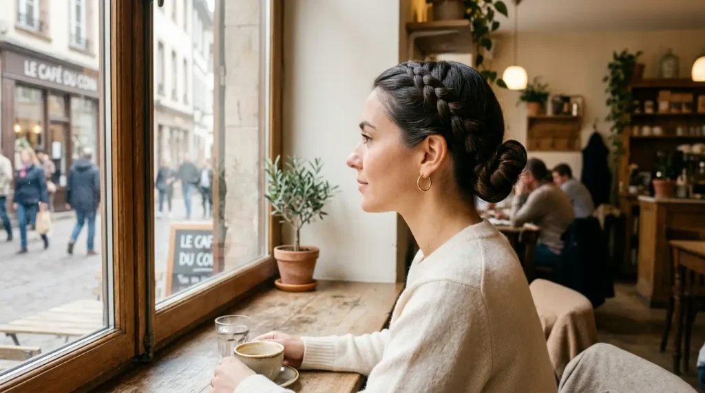 If you’re someone who loves minimalist fashion — clean blazers, gold hoops, barely-there makeup — this braid halo is going to feel like it was made for you. And here’s a little personal tip: try weaving a thin metallic thread through the braid. It’s small, unexpected, and it catches the light in the best way.