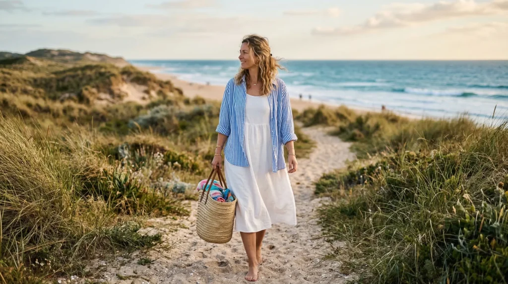 You might be wondering: what actually separates a great spring beach outfit from just throwing on casual clothes? The answer is intentionality. Coastal style 2026 isn’t about wearing the most expensive pieces or following trends blindly — it’s about choosing fabrics, silhouettes, and colors that work with the beach environment rather than against it.