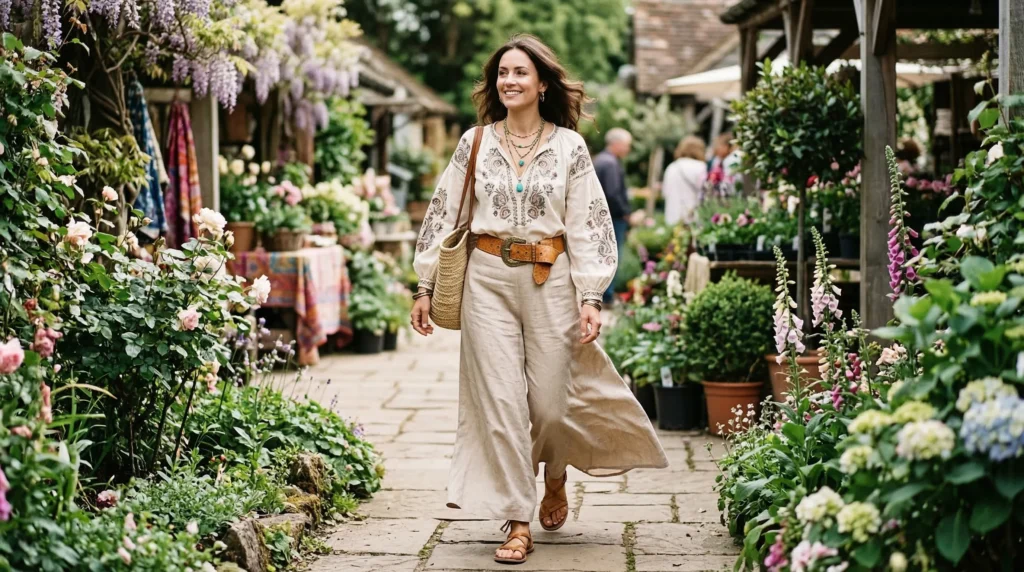 Now here’s what I love about this aesthetic for spring specifically: it’s forgiving. The loose silhouettes, the breathable fabrics, the layering that adjusts as the temperature changes — boho spring outfits are genuinely designed for transitional weather. That’s not an accident.