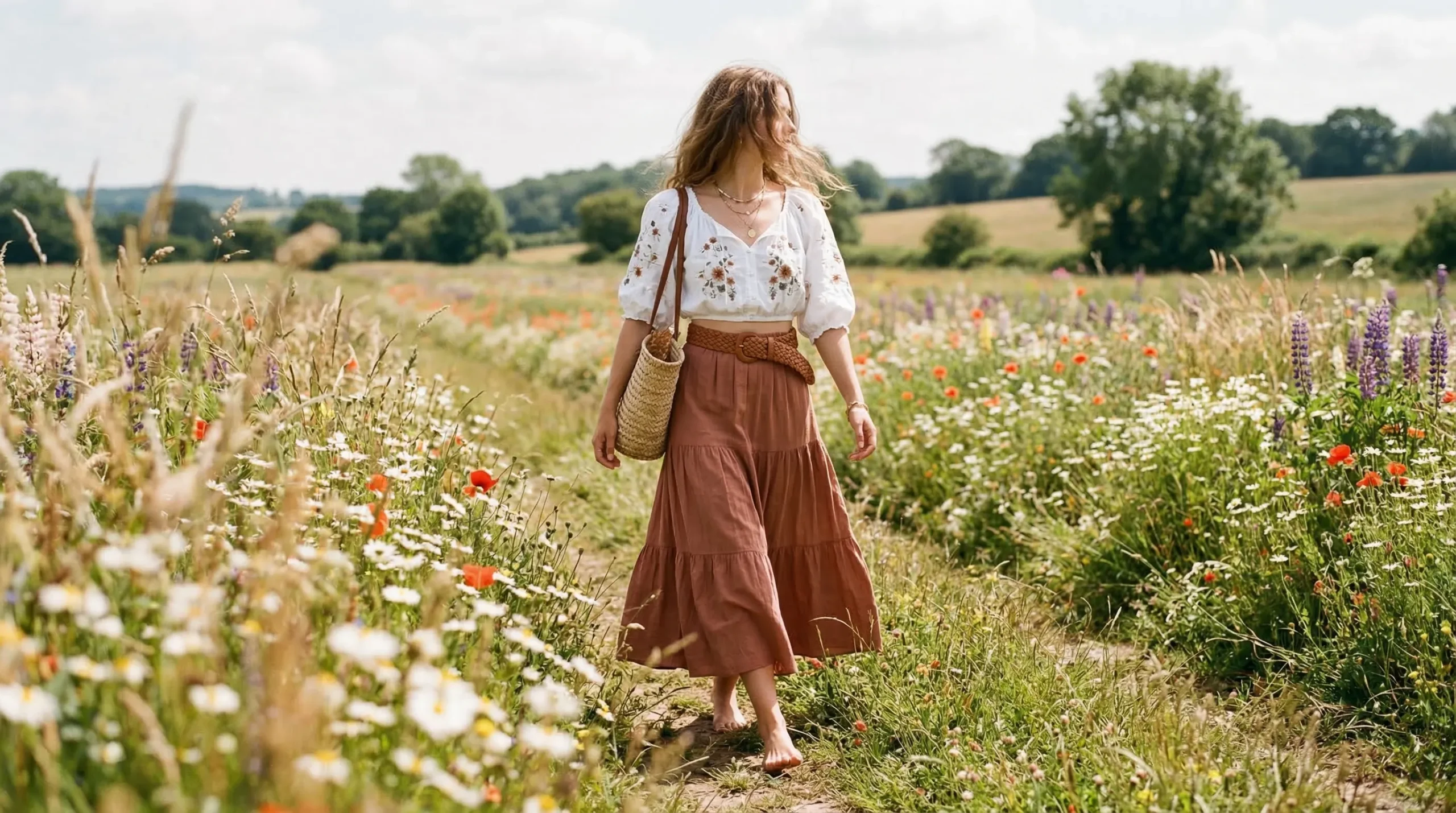 If you’re hesitant about committing to full boho, this is your entry point. Swap the sandals for sneakers or the skirt for a lighter cotton version — it still works either way.