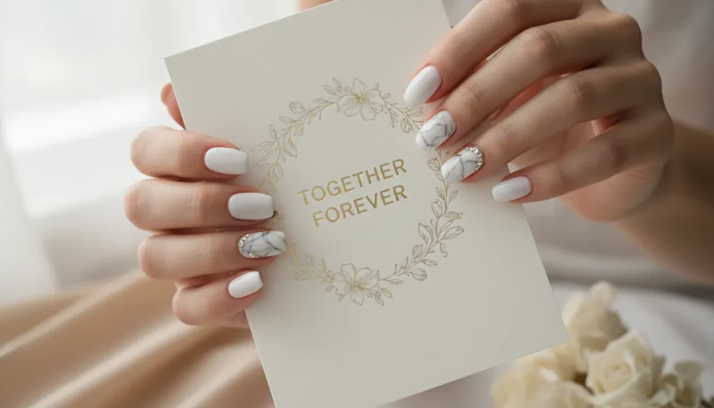 The best part? White works as a base for pretty much any design you can imagine. Add some gold accents, throw in some hearts, or keep it plain. All of it looks good.