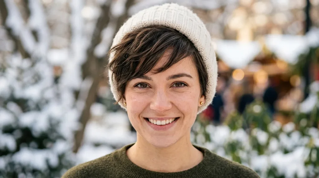 This cut takes some courage, but winter is genuinely the best time to go for it. Your hair will feel healthier (less sun and heat damage), and shorter hair actually looks more polished under winter accessories like beanies and hats. Moreover, the modern pixie is incredibly low-maintenance once you’re past the first few weeks.