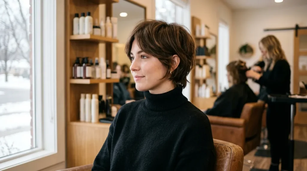 You might be wondering: “But won’t a shorter cut look harsh in the cold months?” Not at all. The key is texture. Modern short winter haircuts are almost always styled with soft movement — think lived-in waves, curtain bangs, and layered ends. It’s less severe than the bobs of five years ago, and a whole lot more flattering for everyday life. Additionally, shorter cuts actually work better under hats and scarves than you’d think.