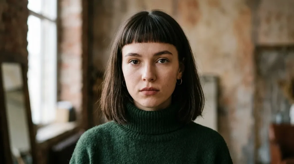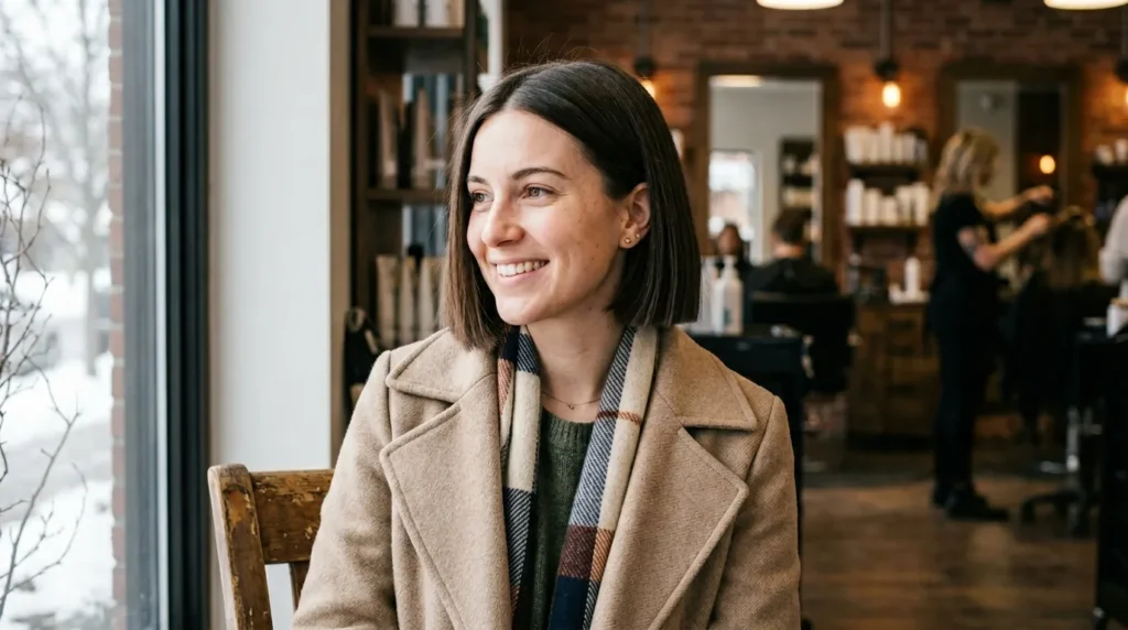 The blunt bob isn’t new, but it’s been completely reinvented for 2025–2026. The modern version sits right at the jaw or just below, with ends cut in a single clean line. It looks incredibly chic. What makes it work in winter is that it frames your face beautifully when you’re bundled up in a scarf and coat.
