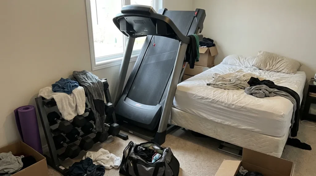 I used to keep my treadmill in my bedroom because “it was convenient.” Know what else was convenient? Never getting quality sleep.