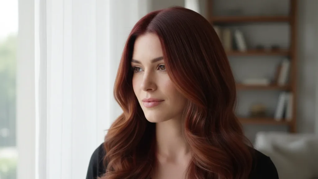 The color typically features a brown base with strong red undertones that catch the light beautifully. Now here’s where it gets interesting: depending on your base color and the specific formulation your colorist uses, deep auburn hair can lean more toward burgundy, copper, or even mahogany.