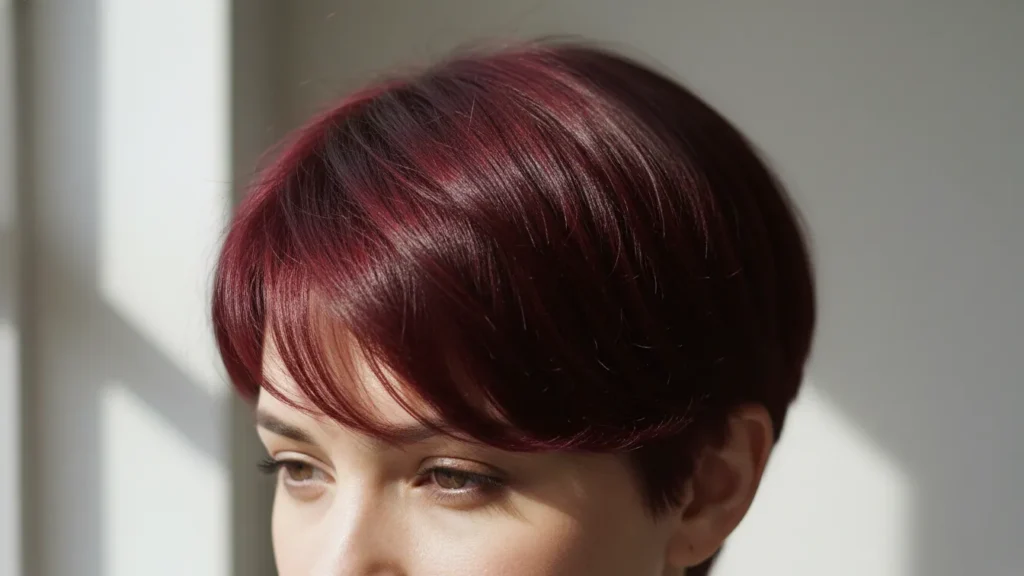 Who says you need length for stunning deep cherry red hair color ideas? This pixie cut absolutely glows with rich cherry tones throughout, proving that bold color works on any length.