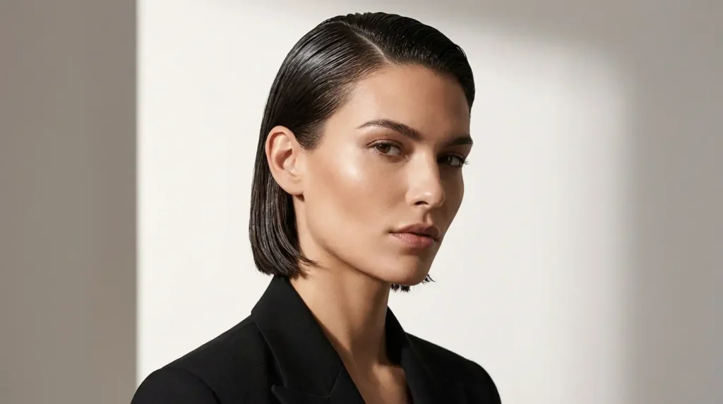 The cropped ear-length bob sits close to the head with minimal volume or fuss. It’s perfect if you’ve got fine to medium hair and you want something that looks polished without effort. A tiny bit of smoothing serum or light pomade through the ends keeps it looking intentional. This short bob is ideal for active lifestyles—it stays in place during workouts and looks professional in meetings.